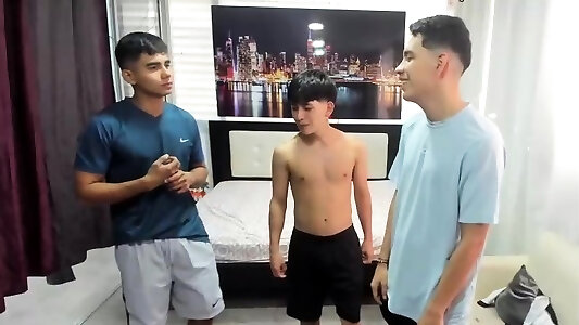 Muscle youngsters dp and cum-shot