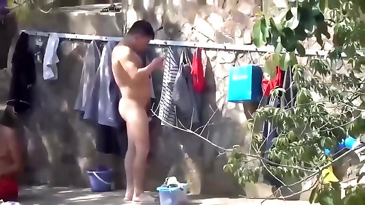 Wet Fur! Hairy Stepdaddy Bear Showers Outdoors And Blows A Huge Load!