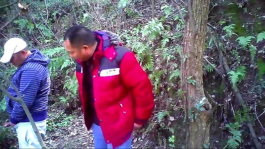 Outdoor Gay anal sex in forest with skinny ass bareback slut