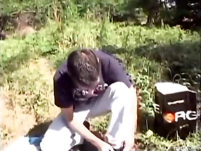 allaperto frocio fuck - a-thon nella foresta. sperma sul culo